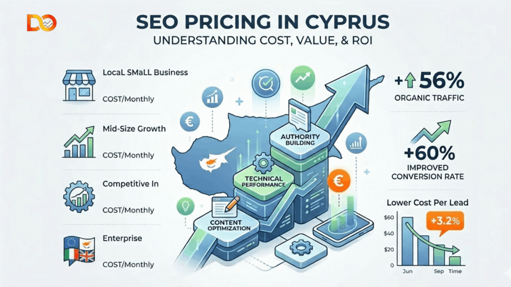 This guide answers both questions with real numbers, an honest breakdown of what each pricing tier delivers, and a practical ROI framework so you can evaluate any proposal you receive from any SEO company in Cyprus.